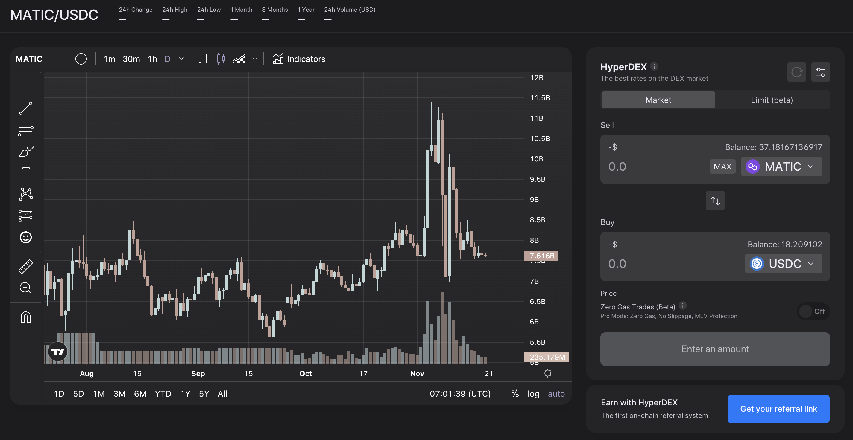 To wrap your tokens, please open [**HyperDEX**](https://apy.plasma.finance/#/hyper-dex/market) and chose assets: From "Matic" To "wMatic", for example. Put the amount of Matic to wrap and sign a transaction.